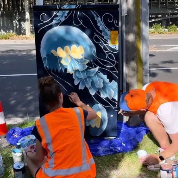Ben has been commissioned to create illustrations for a diverse range of clients, allowing him to adapt his approach to suit the distinct needs and objectives of each project. Working with councils he has contributed to public spaces that visually reflect the local culture and identity. Collaborating with hospitals his illustrations aim to bring xxx and inspiration to staff. Partnering with small businesses has allowed Ben to play a significant role in their branding and marketing efforts, creating eye-catching visuals that capture their essence and helping them to stand out. Engaging in community initiatives and festivals has allowed Ben’s illustrations to promote education, social causes and community spirit. Through these diverse projects, Ben has been able to showcase his artistic versatility and make a positive impact through visual storytelling.